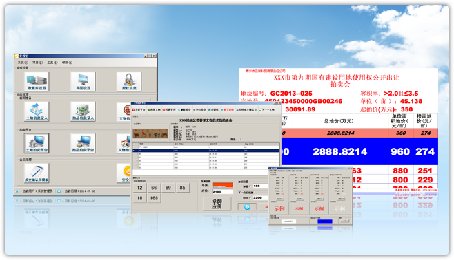 迅潮拍卖管理软件 迅潮拍卖管理软件是根据拍卖过程中需要进行投影显示拍卖信息的要求以及拍卖信息化管理的需要,在专业拍卖人士指导下研制开发的拍卖软件。系统主要作用在于:工作人员现场操作页面同投影页面分开,这样可以避免在投影过程中竞买人看得到工作人员后台数据操作的尴尬的局面,使得业务操作更加规范;提高工作效率,又可融于企业自身计算机信息系统中便也如后的信息查询。该软件适用于日常拍卖、公物拍卖、土地拍卖、司法拍卖、文物拍卖、机动车拍卖、资产拍卖等各项拍卖。